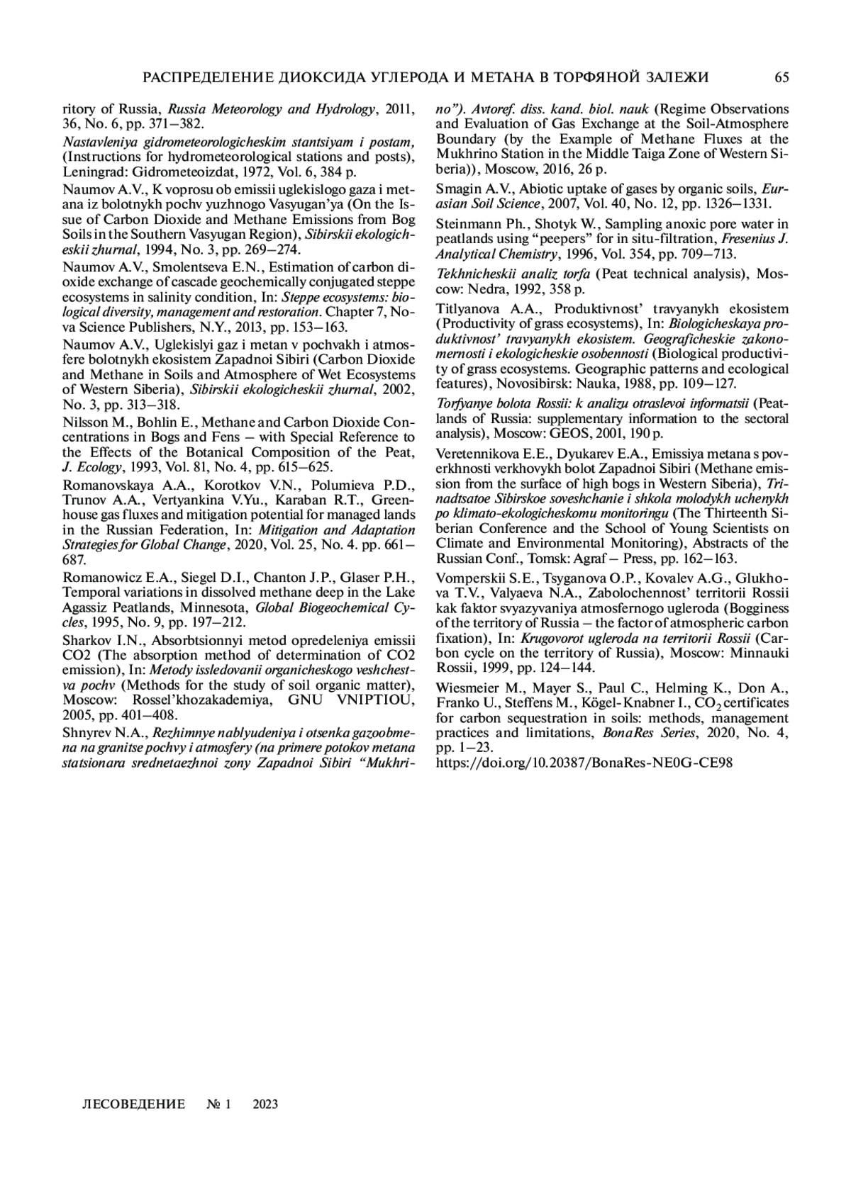 21. Наумов А.В. Углекислый газ и метан в почвах и атмосфере болотных экосистем Западной Сибири // Сибирский экологический журн. 2002. № 3. С. 313–318. EDN: YALQVF