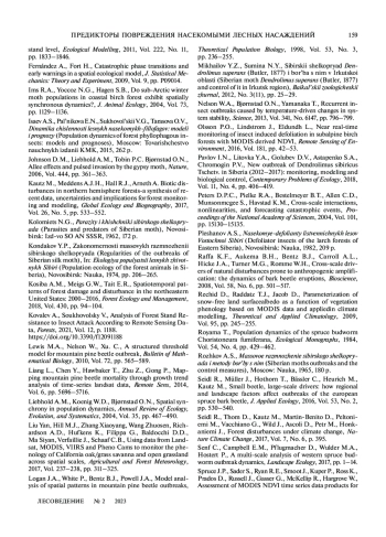 33. Royama T. Population dynamics of the spruce budworm Choristoneura fumiferana // Ecological Monographs. 1984. V. 54. № 4. P. 429–462.