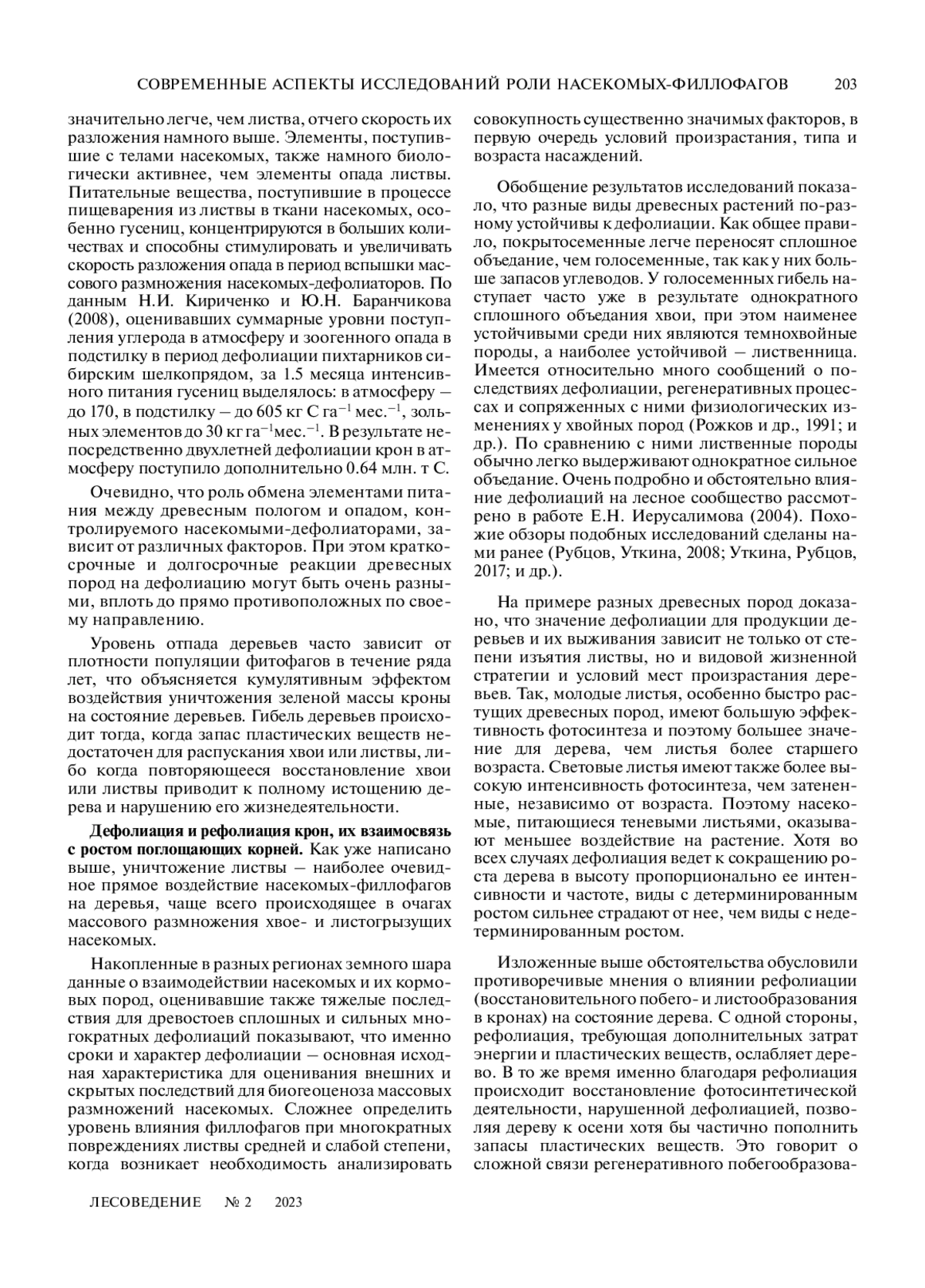 4. Воронцов А.И., Иерусалимов Е.Н., Мозолевская Е.Г. Роль листогрызущих насекомых в лесном биогеоценозе // Журнал общей биологии. 1967. Т. 28. № 2. С. 172-187.