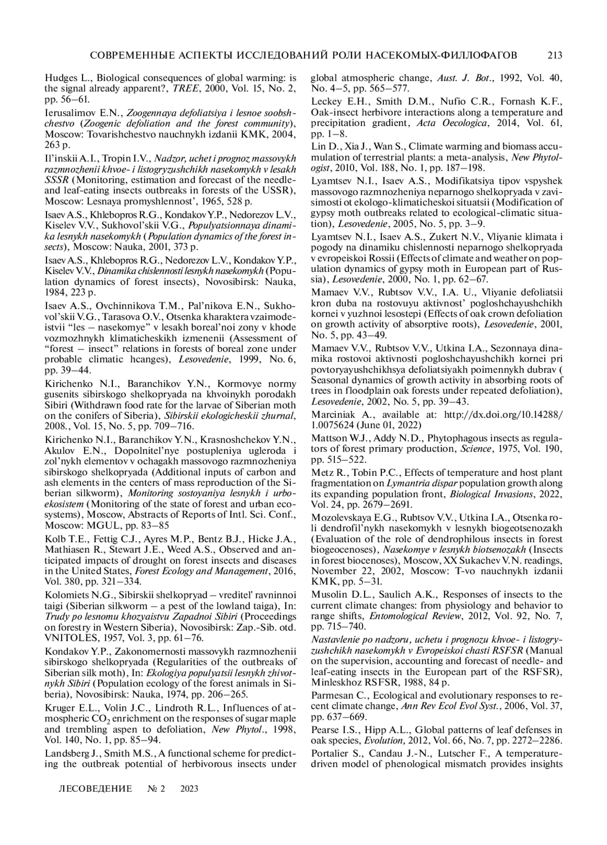 19. Лямцев Н.И., Исаев А.С., Зукерт Н.В. Влияние климата и погоды на динамику численности непарного шелкопряда в европейской России // Лесоведение. 2000. № 1. С. 62–67.