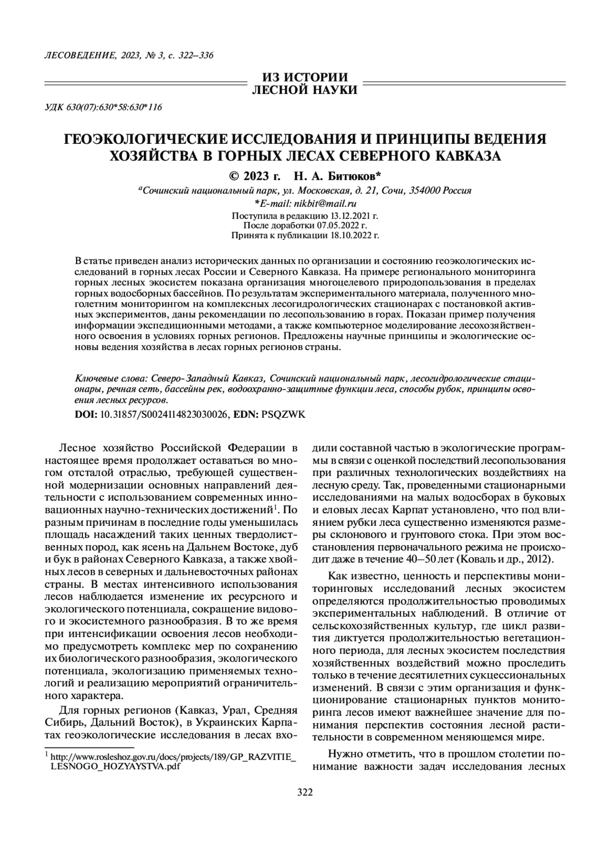 8. Битюков Н.А. Итоги длительного мониторинга экосистем буковых насаждений Черноморского побережья Кавказа // Лесоведение. 2015. № 3. С. 202–207. EDN: UAHMMN