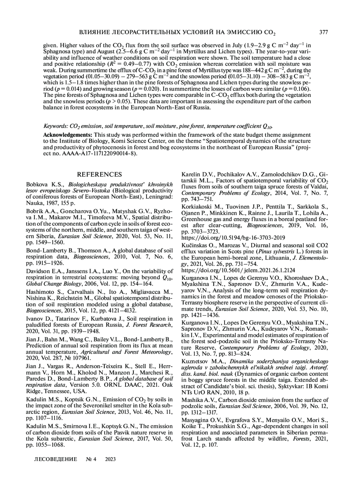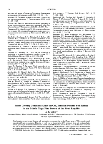 12. Ivanov D., Tatarinov F., Kurbatova J. Soil respiration in paludified forests of European Russia // J. Forest Research. 2020. V. 31. P. 1939–1948.