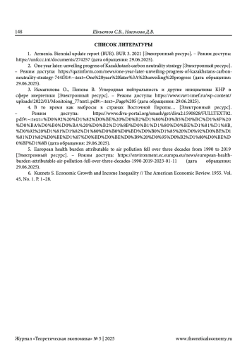 Ключевые фразы: окружающая среда, ЭКОЛОГИЧЕСКАЯ КРИВАЯ КУЗНЕЦА, экономический рост на пространстве еаэс, эмиссия co2, pm25