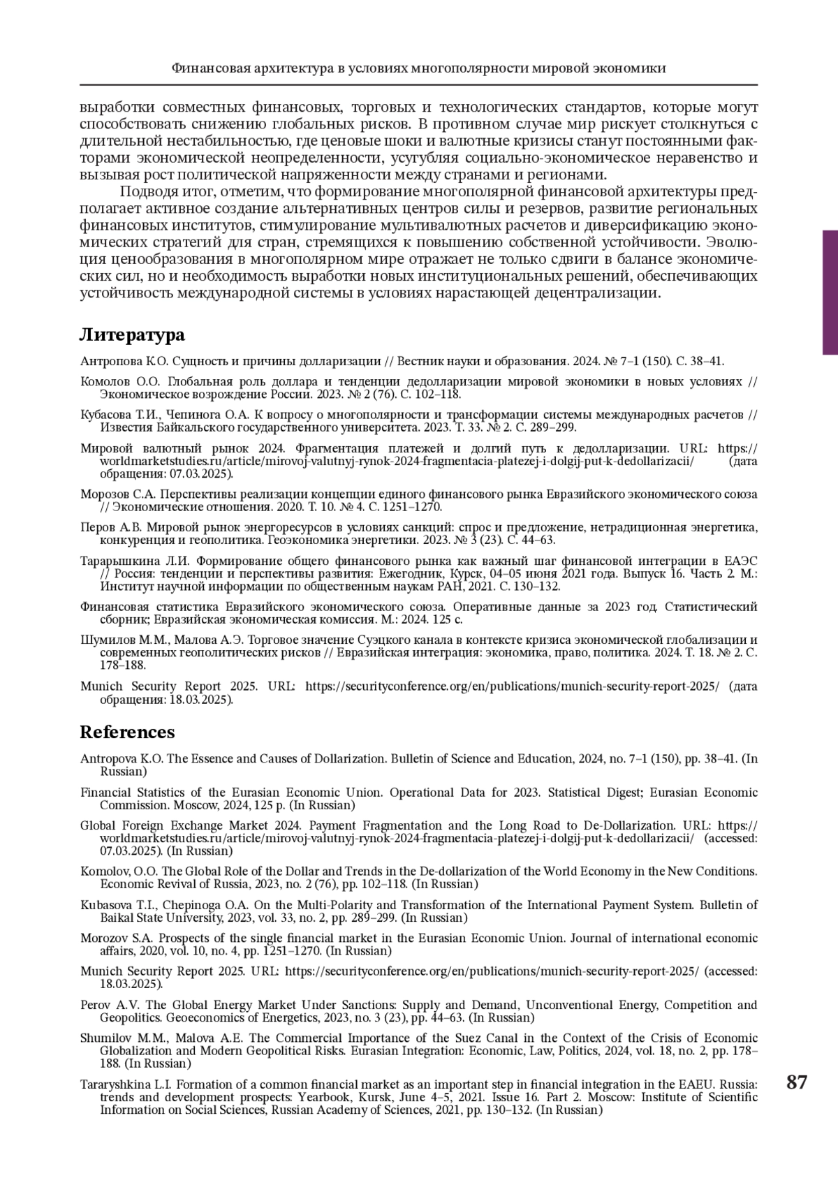 3. Кубасова Т.И., Чепинога О.А. К вопросу о многополярности и трансформации системы международных расчетов // Известия Байкальского государственного университета. 2023. Т. 33. № 2. С. 289-299.