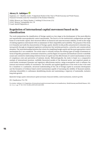 2. Архипов А.Д. Инновационные механизмы контроля за международным движением капитала // Мировая экономика и мировые финансы. 2025. Т. 4. № 1. С. 70-77.