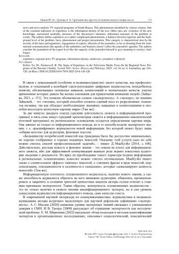 8. Каминская Т. Л., Ерохина О. В. Экспертный медиаконтент: создание и использование в современных медиа // Вопросы теории и практики журналистики. 2023. № 12 (1). С. 24-40.