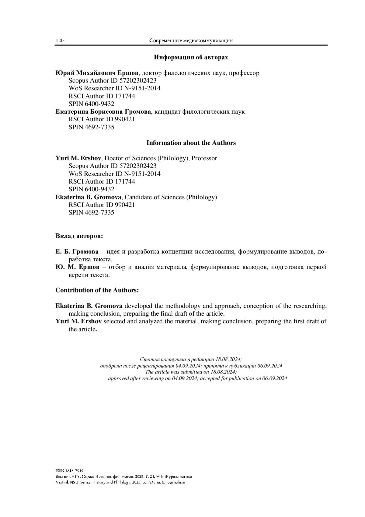 7. Каминская Т. Л. Экспертный медиаконтент как социальный ориентир // Медиалингвистика: Материалы докладов участников VII Междунар. конф. СПб.: Медиапапир, 2023в. С. 417-421.