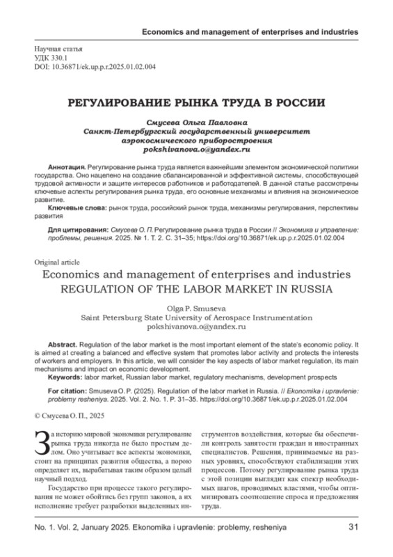 4. Гехт М. А. Государственное регулирование рынка труда и занятости населения РФ / М. А. Гехт. - Текст: непосредственный // Молодой ученый. - 2019. - № 48(286). - С. 356-359. EDN: LKIEQQ