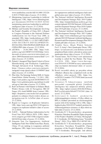 2. AI-wielding tech firms are giving a new shape to modern warfare [рус. Технологические компании, использующие искусственный интеллект, придают новую форму современной войне]. The Economis. Feb 16. 2023. URL: https://www.economist.com/business/2023/02/16/ai-wieldingtech-firms-are-giving-a-new-shape-to-modernwarfare (дата обращения: 25.12.2024).
