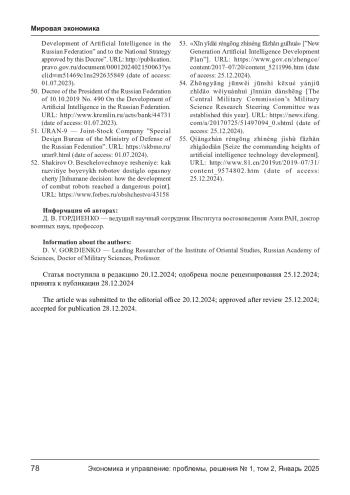 52. Шакиров О. Бесчеловечное решение: как развитие боевых роботов достигло опасной черты. URL: https://www.forbes.ru/obshchestvo/431583-beschelovechnoe-reshenie-kak-razvitie-boevyhrobotov-dostiglo-opasnoy-cherty (дата обраще ния: 25.12.2024).
