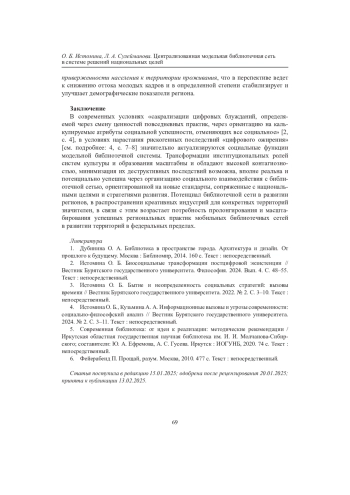 1. Дубинина О. А. Библиотека в пространстве города. Архитектура и дизайн. От прошлого к будущему. Москва: Библиомир, 2014. 160 с. Текст: непосредственный.