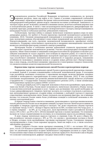 3. Володин А.Г. Превращение Индии в одного из ключевых внешнеторговых партнеров России: причины и перспективы // Научные труды Вольного экономического общества России. 2024. Т. 248. № 4. С. 278-289.