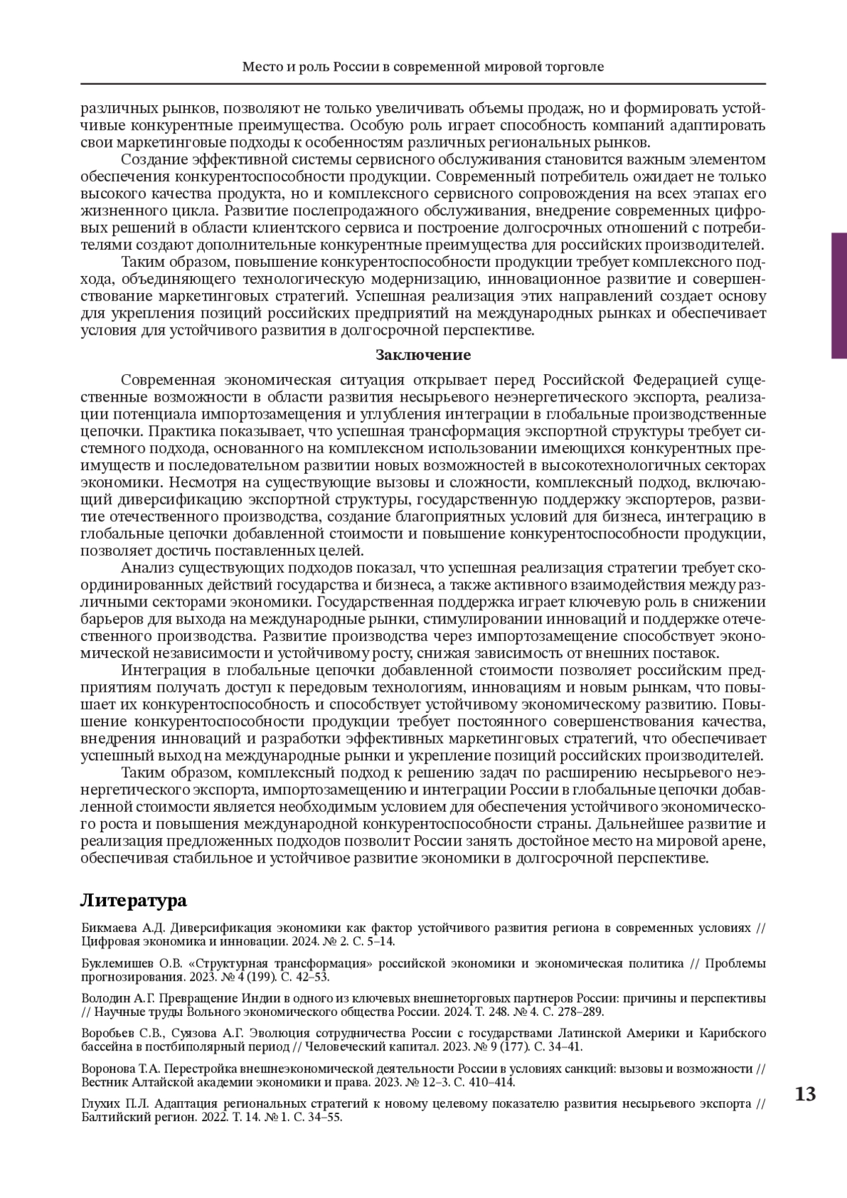 6. Глухих П.Л. Адаптация региональных стратегий к новому целевому показателю развития несырьевого экспорта // Балтийский регион. 2022. Т. 14. № 1. С. 34-55.