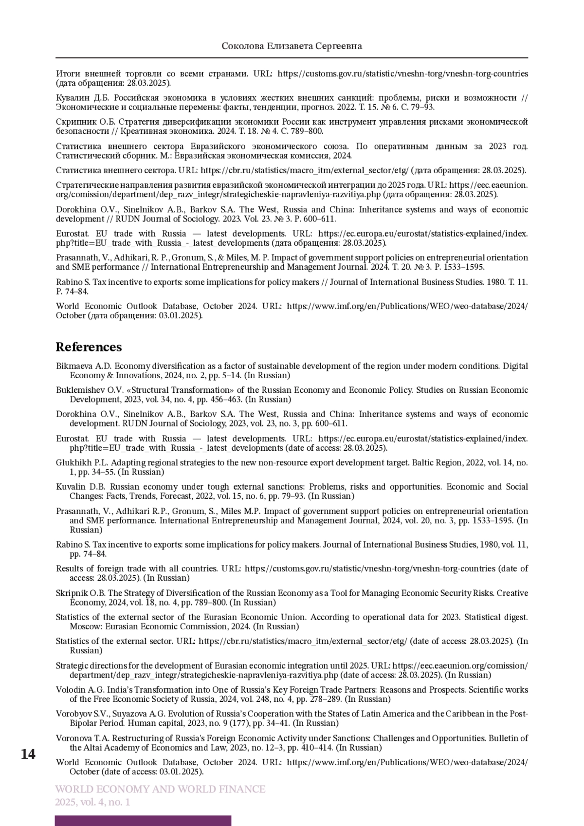 14. Eurostat. EU trade with Russia - latest developments. URL: https://ec.europa.eu/eurostat/statistics-explained/index.php?title=EU_trade_with_Russia_-_latest_developments (дата обращения: 28.03.2025).