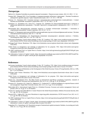 3. Исакова Э.Т., Танющева Н.Ю. Основные векторы в международном антиотмывочном взаимодействии // Азимут научных исследований: экономика и управление. 2022. Т. 11. № 3 (40). С. 23-28.