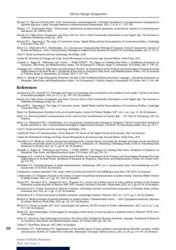 8. Ляховенко О.И. Телеграм-каналы в системе экспертной и политической коммуникации в современной России // Galactica Media: Journal of Media Studies. 2022. № l. C. 114-144.