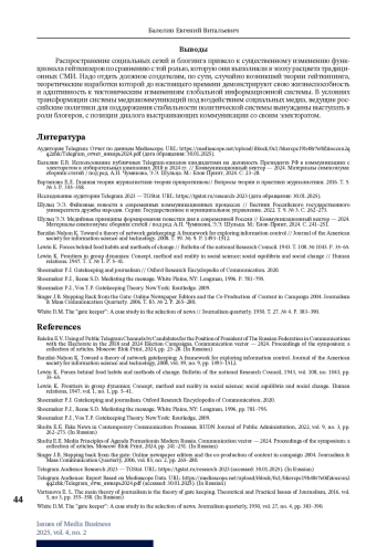 10. Shoemaker P.J. Gatekeeping and journalism // Oxford Research Encyclopedia of Communication. 2020.