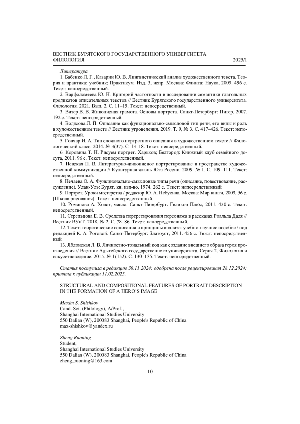 5. Гончар И. А. Тип сложного портретного описания в художественном тексте // Филологический класс. 2014. № 3(37). С. 13-18. Текст: непосредственный. EDN: SYUCSR
