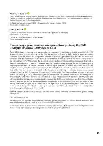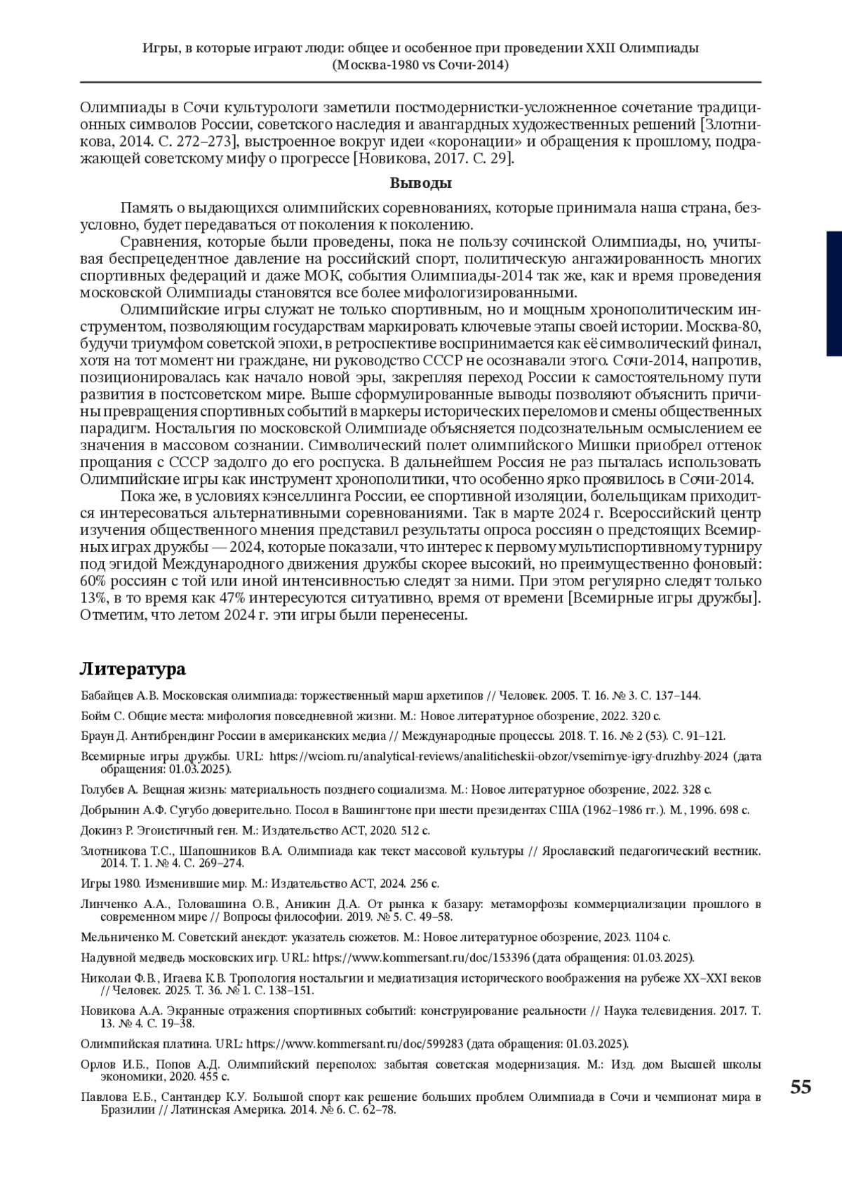 Статья: Игры, в которые играют люди: общее и особенное при проведении XXII Олимпиады (Москва-1980 vs Сочи-2014) (2025)