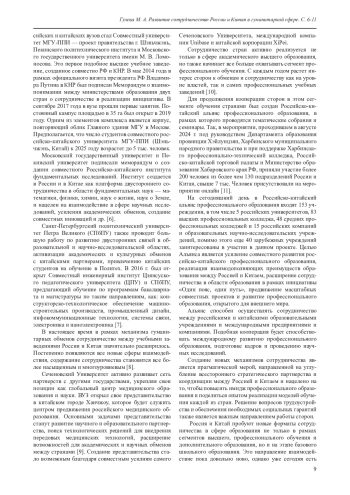 В статье рассматривается взаимодействие России и Китая в образовательной сфере в последние годы. Гуманитарное сотрудничество всегда было одной из важнейших областей в двусторонних отношениях наших двух стран. В 21 веке контакты и обмены в сегменте высшего образования вышли на новый этап развития, кроме того, Россия и Китая начали активно наращивать взаимодействие на уровне школьного и профессионального образования. Страны расширяют горизонты сотрудничества, взаимодействуя не только на межгосударственном уровне, но и на международных площадках, как, например, БРИКС, ШОС и в рамках инициативы «Один пояс, один путь», находят все новые форматы сотрудничества, такие как, создание альянсов между учебными заведениями, совместное открытие школ и колледжей, активные обмены и консультации в подготовке кадров. Все это в перспективе должно еще больше укрепить фундамент социально-экономического сотрудничества между государствами и принести практическую пользу для народов наших стран.