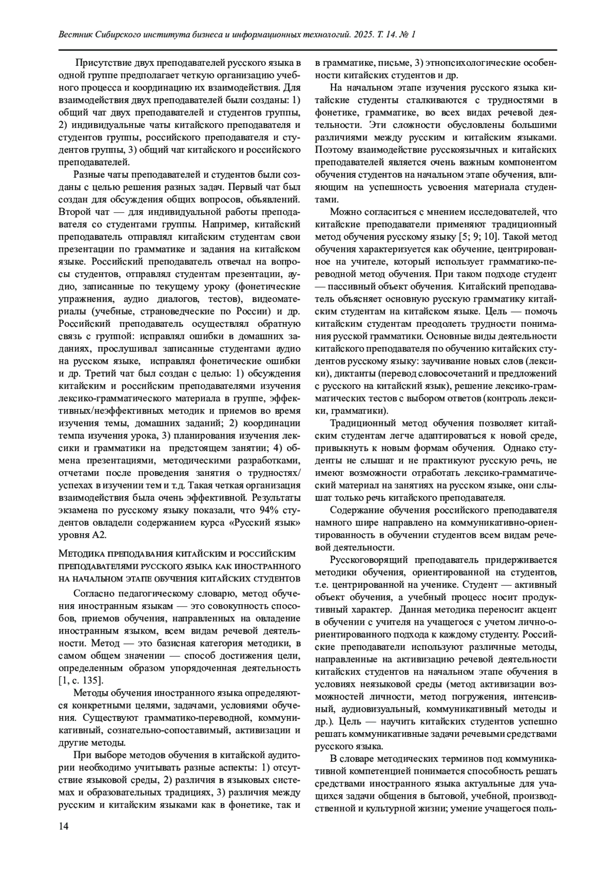 9. Цзя Цянь, Ло Сяося. Методика обучения РКИ в китайских вузах при сотрудничестве китайских и русских преподавателей // Тяньцзиньский педагогический университет, г. Тяньцзинь, Китайская Народная Республика // Вестник СВФУ. 2023. № 3 (31). С. 57-64.
