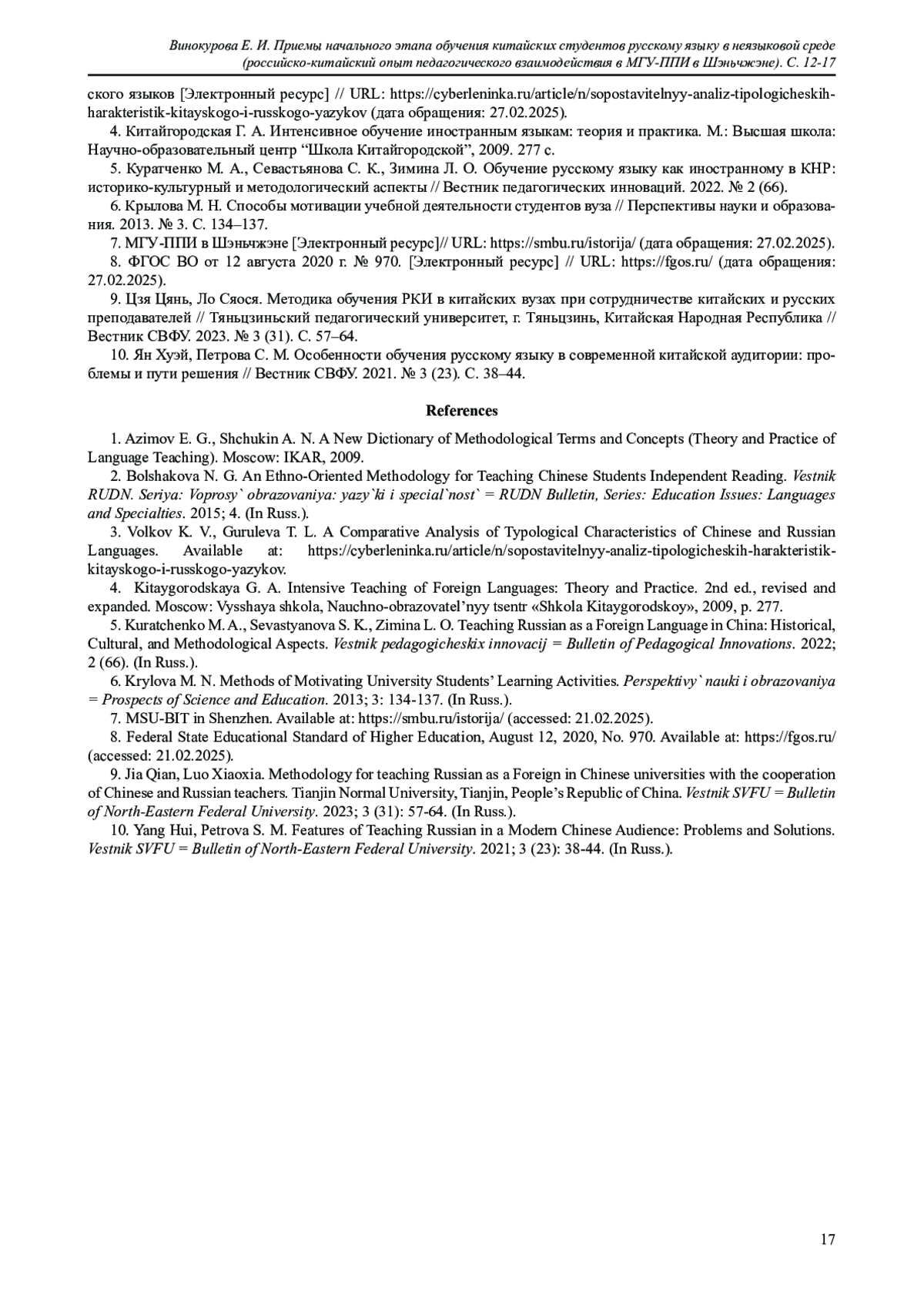 5. Куратченко М. А., Севастьянова С. К., Зимина Л. О. Обучение русскому языку как иностранному в КНР: историко-культурный и методологический аспекты // Вестник педагогических инноваций. 2022. № 2 (66).