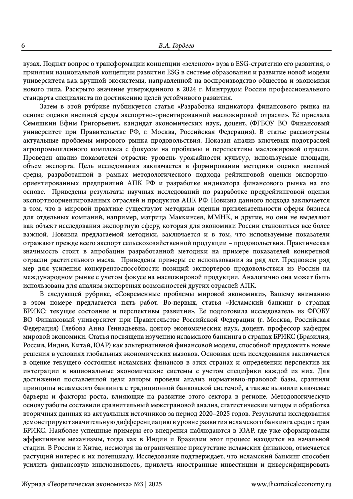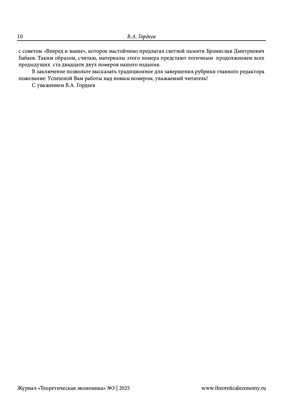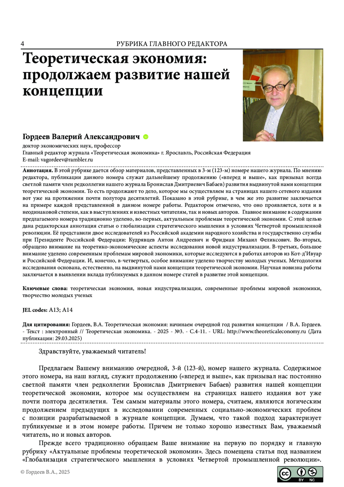 ГОРДЕЕВ В. А. ТЕОРЕТИЧЕСКАЯ ЭКОНОМИЯ: ПРОДОЛЖАЕМ РАЗВИТИЕ НАШЕЙ КОНЦЕПЦИИ // ТЕОРЕТИЧЕСКАЯ ЭКОНОМИКА. 2025. № 3 (123) (11 СТ.)