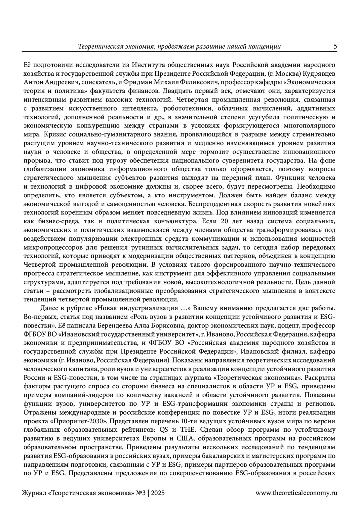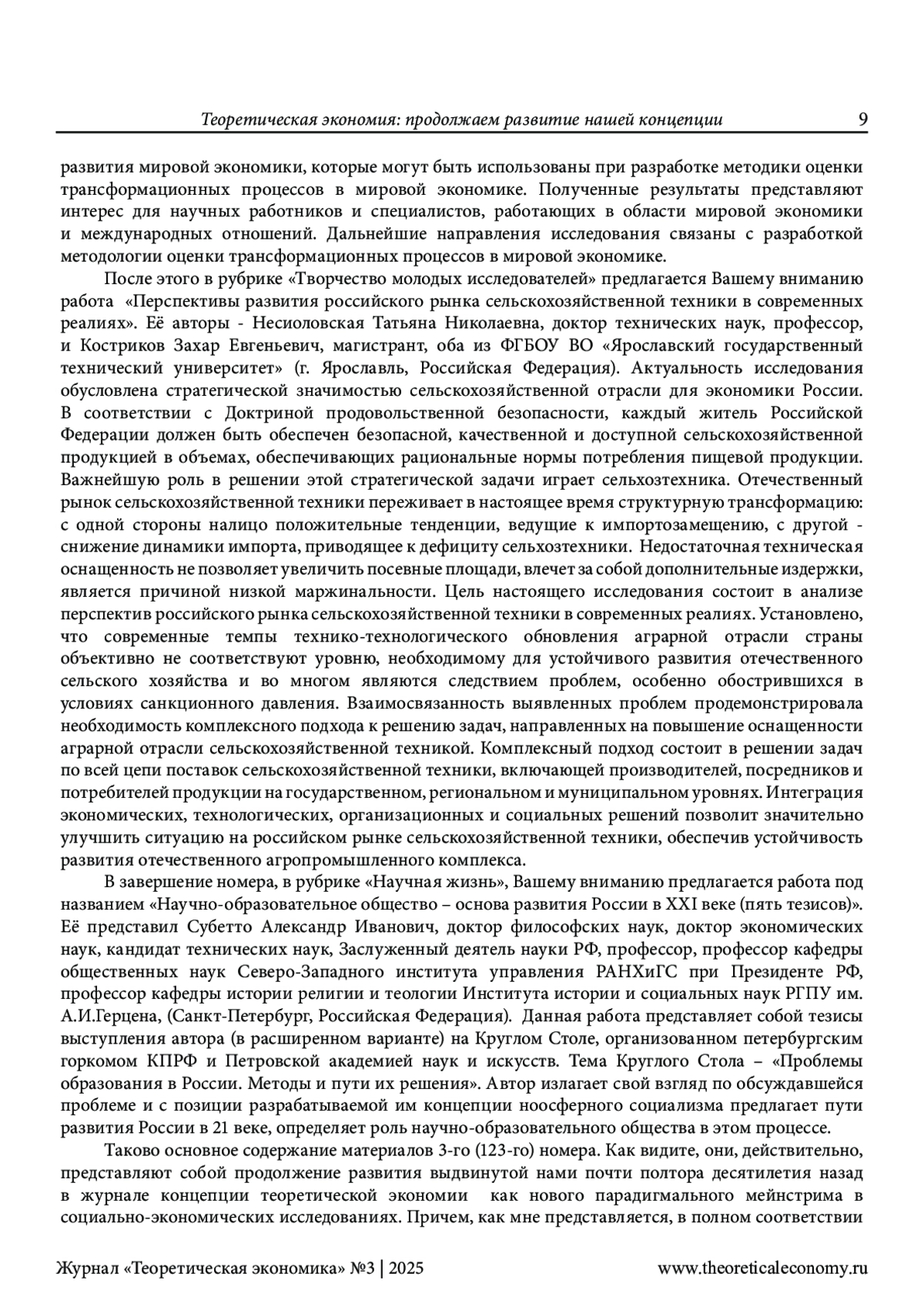 Статья: ТЕОРЕТИЧЕСКАЯ ЭКОНОМИЯ: ПРОДОЛЖАЕМ РАЗВИТИЕ НАШЕЙ КОНЦЕПЦИИ (2025)
