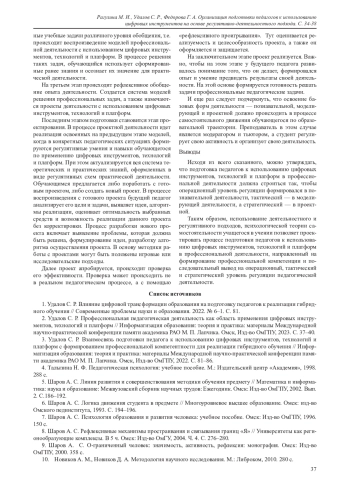1. Удалов С. Р. Влияние цифровой трансформации образования на подготовку педагогов к реализации гибридного обучения // Современные проблемы науки и образования. 2022. № 6-1. С. 81.