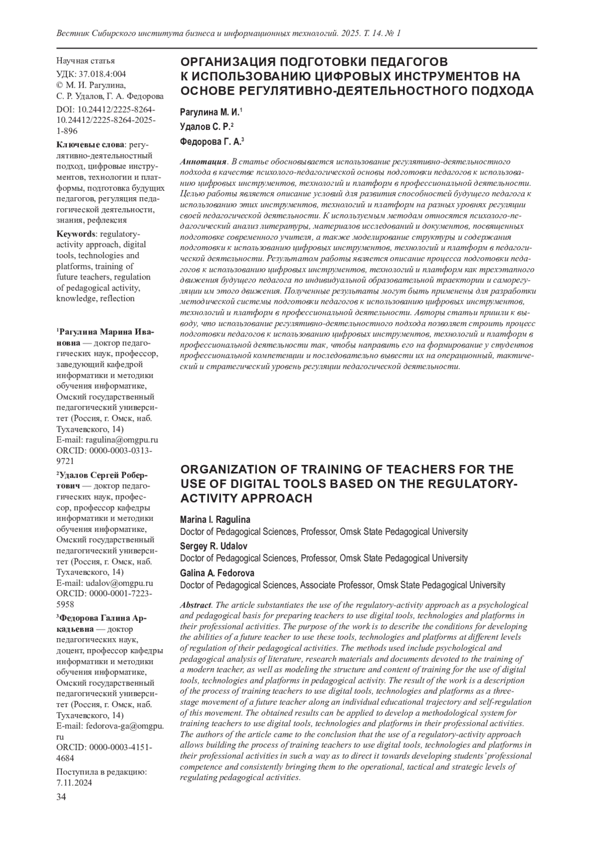 2. Удалов С. Р. Профессиональная педагогическая деятельность как область применения цифровых инструментов, технологий и платформ // Информатизация образования: теория и практика: материалы Международной научно-практической конференции памяти академика РАО М. П. Лапчика. Омск, Изд-во ОмГПУ, 2023. С. 37-40.