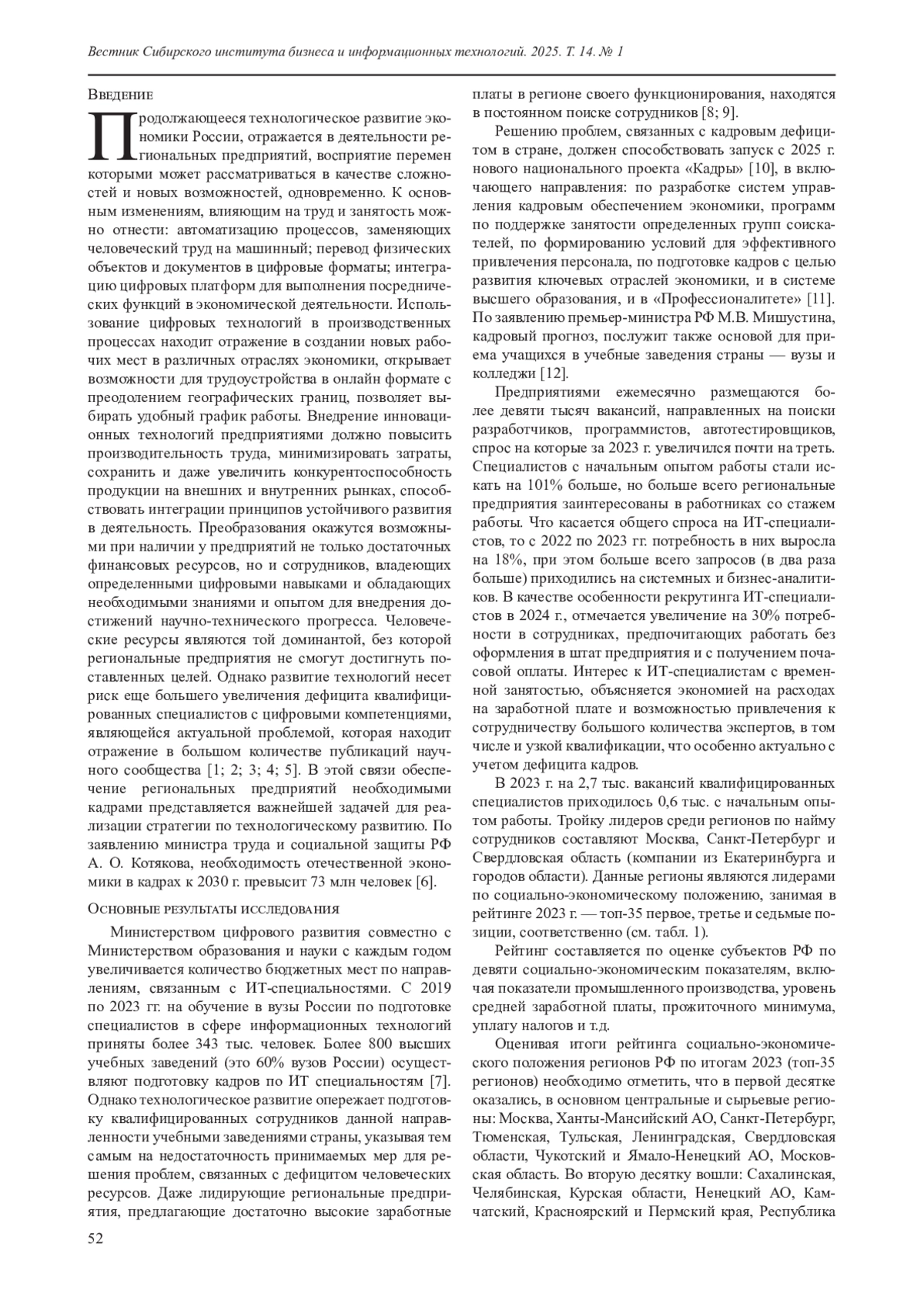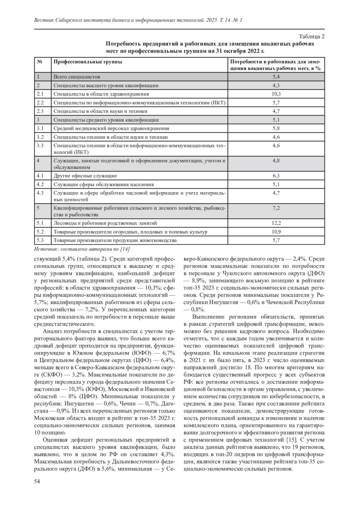 Как показывают данные исследований, социально-экономическое развитие региона влияет на потребности в обеспечении предприятий квалифицированным персоналом в условиях цифровой трансформации.