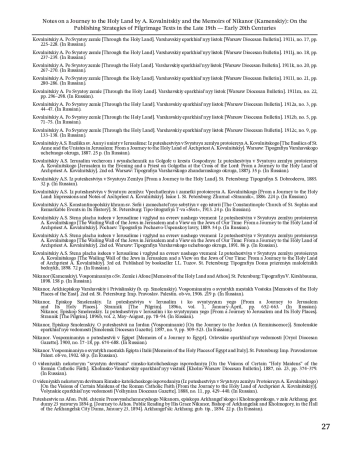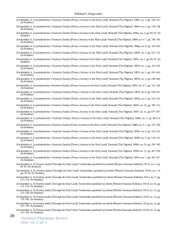 45. Kovalnitskiy A. Iz puteshestviya v Svyatuyu Zemlyu [From a Journey to the Holy Land]. Strannik [The Pilgrim]. 1887i, no. 12, pp. 677-697. (In Russian).