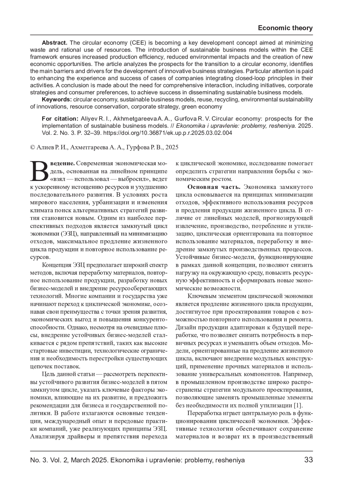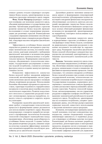 Экономика замкнутого цикла (ЭЗЦ) становится ключевой концепцией развития, направленной на минимизацию отходов и разумное использование ресурсов. Внедрение устойчивых бизнес-моделей в рамках ЭЗЦ обеспечивает повышение эффективности производства, снижение экологических последствий и создание новых экономических возможностей. В статье анализируются перспективы перехода к циклической экономике, определяются основные барьеры и драйверы развития инновационных бизнес-стратегий. Особое внимание способствует повышению опыта и успеху кейсам компаний, интегрирующих принципы замкнутого цикла в своей деятельности. Сделан вывод о необходимости комплексного взаимодействия, включающего инициативы, корпоративные стратегии и потребительские предпочтения, для достижения успеха распространения устойчивых бизнес-моделей.
