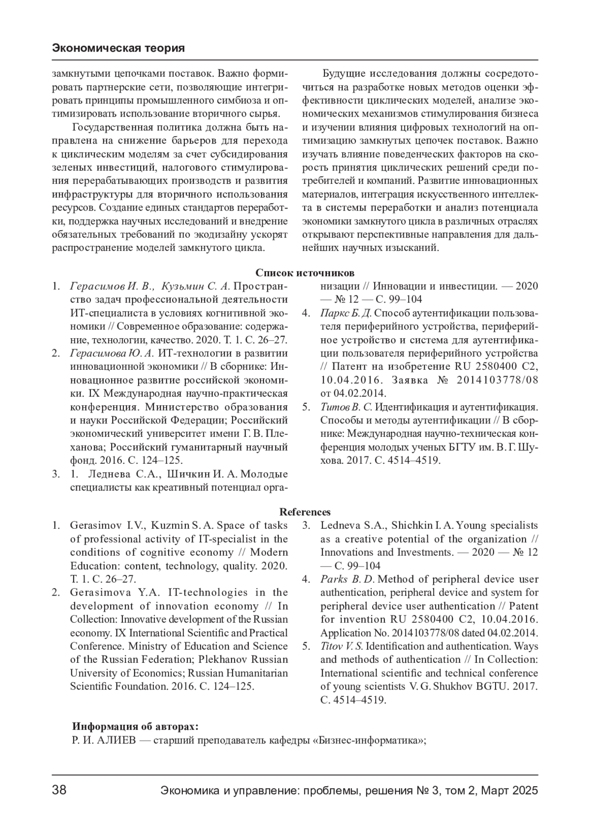 1. Герасимов И. В., Кузьмин С. А. Пространство задач профессиональной деятельности ИТ-специалиста в условиях когнитивной экономики // Современное образование: содержание, технологии, качество. 2020. Т. 1. С. 26-27. EDN: GGOOFS