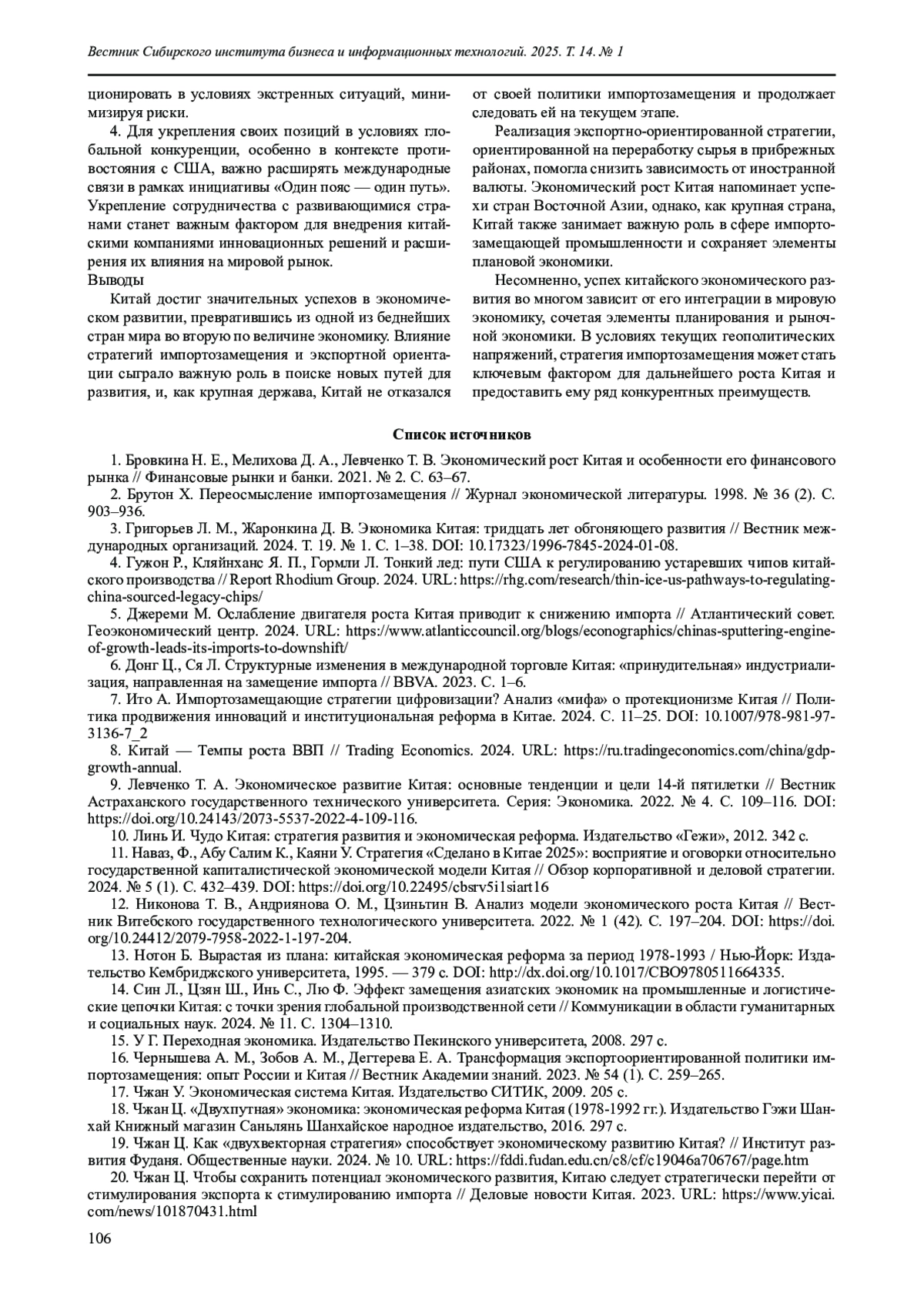 9. Левченко Т. А. Экономическое развитие Китая: основные тенденции и цели 14-й пятилетки // Вестник Астраханского государственного технического университета. Серия: Экономика. 2022. № 4. С. 109-116. https://doi.org/10.24143/2073-5537-2022-4-109-116.