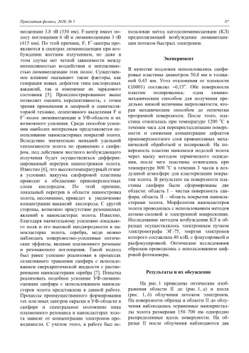 Статья: Влияние нанокластеров золота на катодолюминесценцию поверхности сапфира (2020)
