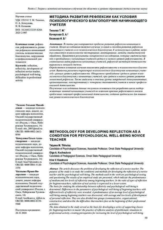 9. Савинова Т. В., Варданян Ю. В., Вдовина Н. А., Сюбаева Р. Р. Развитие рефлексии будущего педагога в процессе освоения психологических дисциплин // Мир науки. Педагогика и психология. 2023. Т. 11. № 4. URL: https://mir-nauki.com/PDF/59PSMN423.pdf