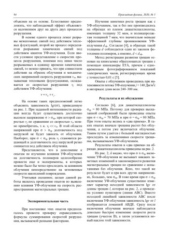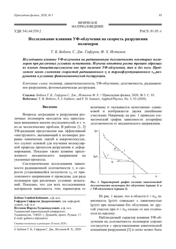 Статья: Исследование влияния УФ-облучения на скорость разрушения полимеров (2020)