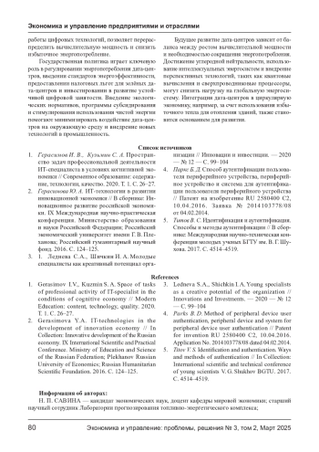 1. Герасимов И. В., Кузьмин С. А. Пространство задач профессиональной деятельности ИТ-специалиста в условиях когнитивной экономики // Современное образование: содержание, технологии, качество. 2020. Т. 1. С. 26-27. EDN: GGOOFS