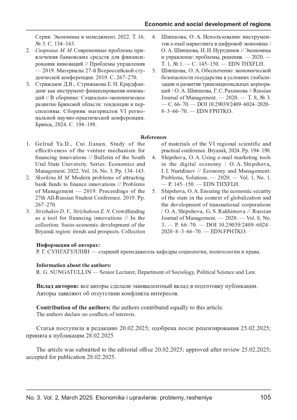 1. Гельруд Я.Д., Цуй Цзянань. Исследование эффективности венчурного механизма финансирования инноваций // Вестник ЮжноУральского государственного университета.
