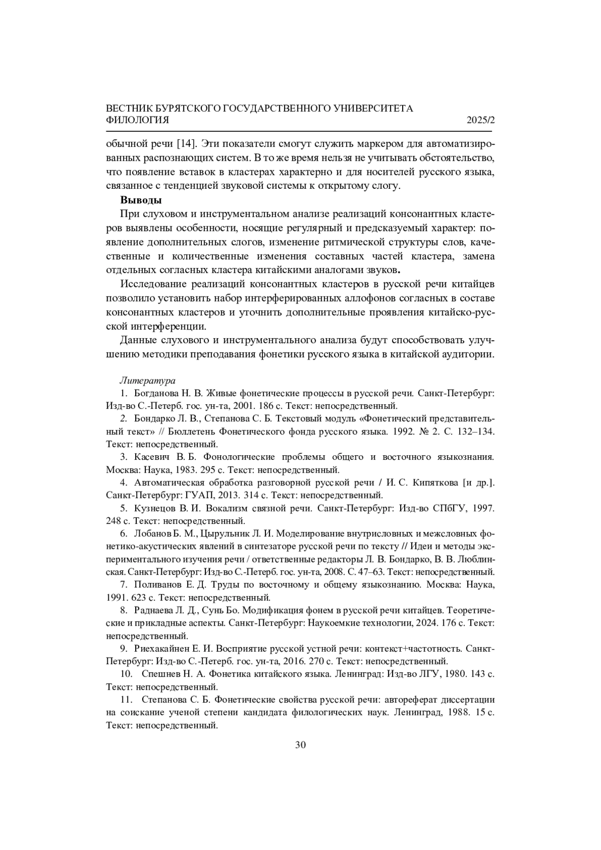 8. Раднаева Л. Д., Сунь Бо. Модификация фонем в русской речи китайцев. Теоретические и прикладные аспекты. Санкт-Петербург: Наукоемкие технологии, 2024. 176 с. Текст: непосредственный. EDN: MBGZAS