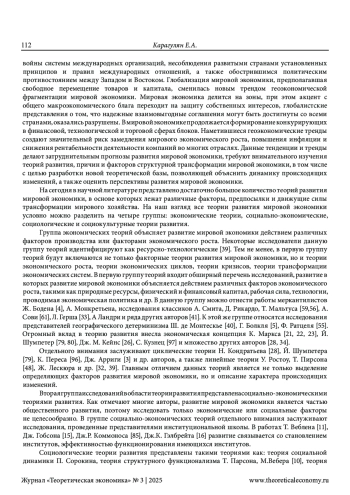 25. Карагулян Е. А. Факторы и принципы трансформации мировой экономики / Е. А. Карагулян // Экономические отношения. - 2024. - Т. 14, № 4. - С. 677-700. DOI: 10.18334/eo.14.4.122381 EDN: SKKWNE