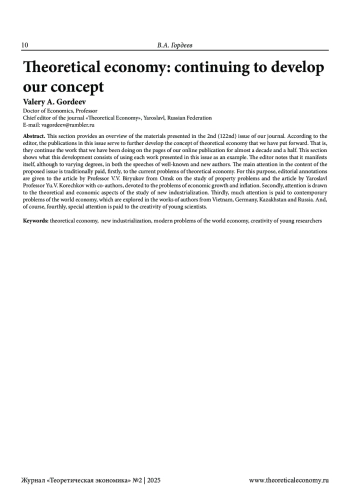 ГОРДЕЕВ В. А. ТЕОРЕТИЧЕСКАЯ ЭКОНОМИЯ: ПРОДОЛЖАЕМ РАЗВИТИЕ НАШЕЙ КОНЦЕПЦИИ // ТЕОРЕТИЧЕСКАЯ ЭКОНОМИКА. 2025. № 2 (122)