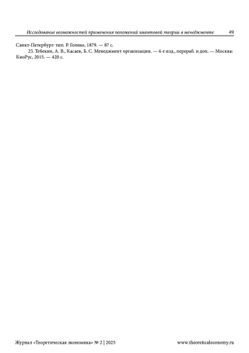 18. Zohar, D. What Is Quantum Management? // Zero Distance. - Singapore: Palgrave Macmillan, 2022. - 10.1007/978-981-16-7849-3_4 (дата обращения: 01.01.2025). DOI: 10.1007/978-981-16-7849-3_4(