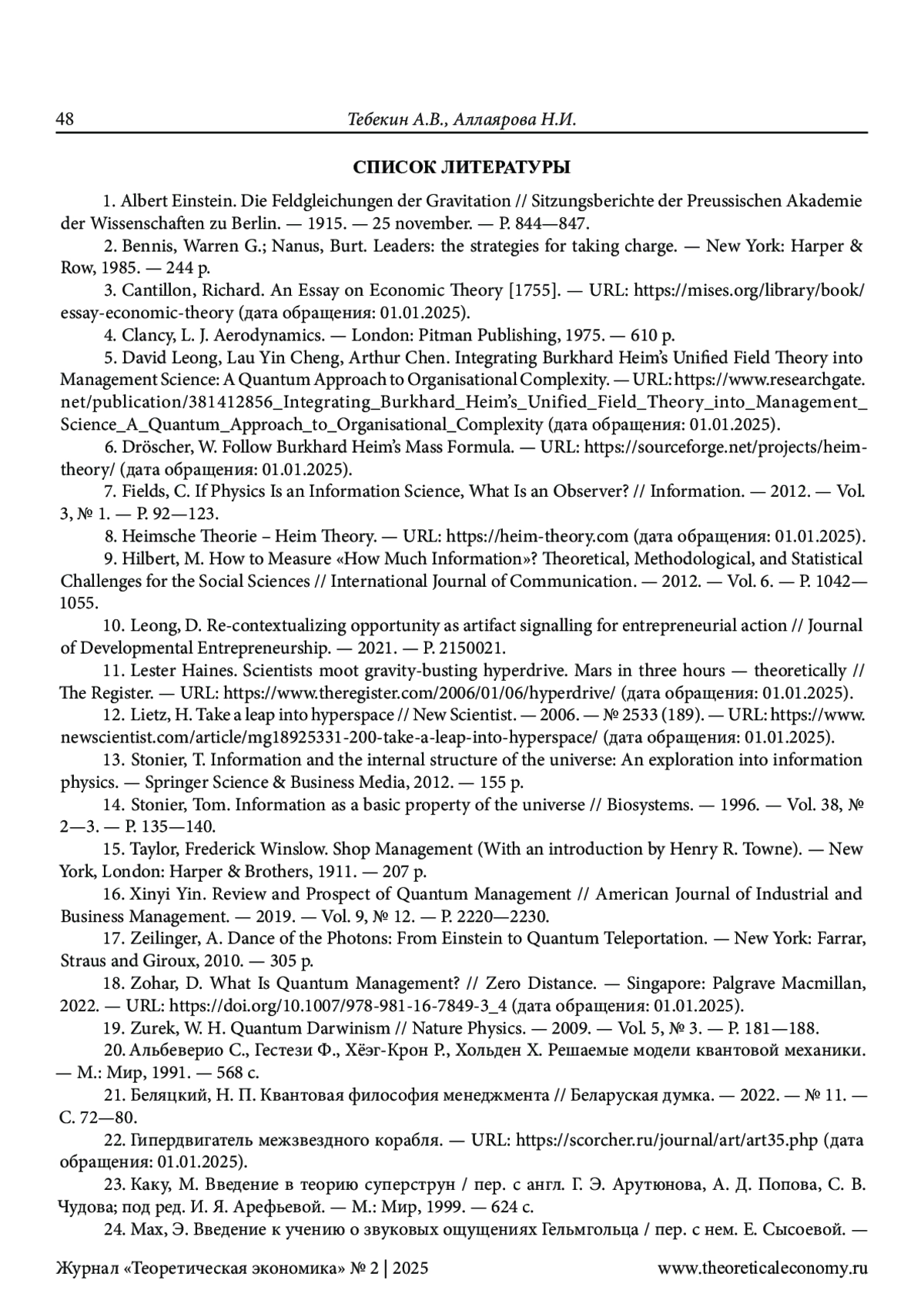 5. David Leong, Lau Yin Cheng, Arthur Chen. Integrating Burkhard Heim’s Unified Field Theory into Management Science: A Quantum Approach to Organisational Complexity. - URL: https://www.researchgate.net/publication/381412856_Integrating_Burkhard_Heim’s_Unified_Field_Theory_into_Management_Science_A_Quantum_Approach_to_Organisational_Complexity (дата обращения: 01.01.2025)