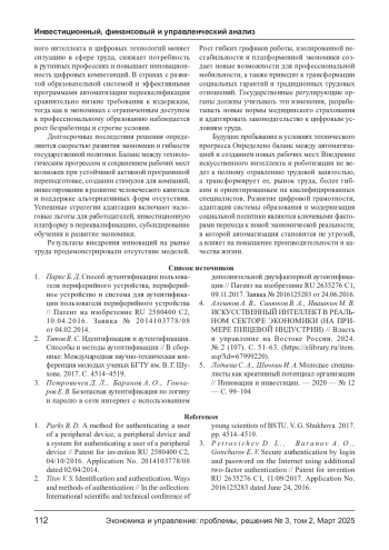 2. Титов В. С. Идентификация и аутентификация. Способы и методы аутентификации // В сборнике: Международная научно-техническая конференция молодых ученых БГТУ им. В. Г. Шухова. 2017. С. 4514-4519. EDN: XQQHDF