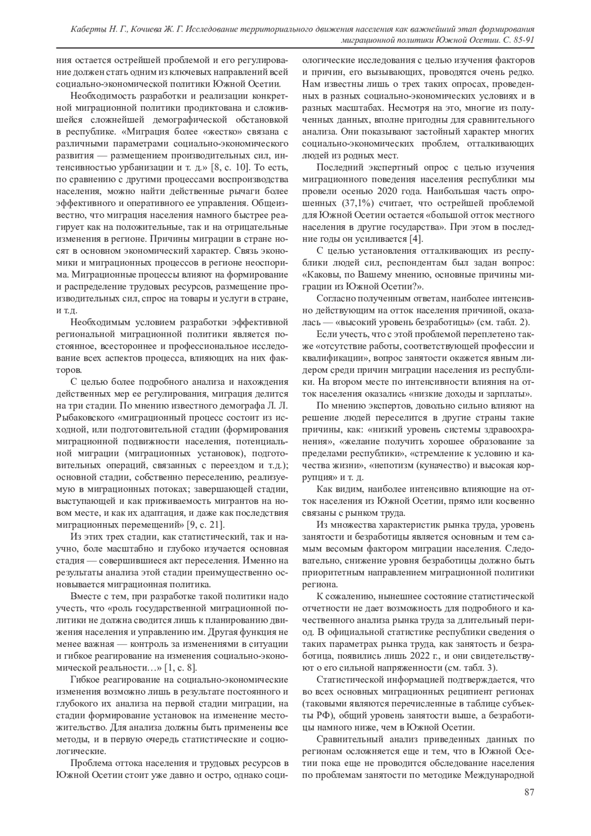 Статья: ИССЛЕДОВАНИЕ ТЕРРИТОРИАЛЬНОГО ДВИЖЕНИЯ НАСЕЛЕНИЯ КАК ВАЖНЕЙШИЙ ЭТАП ФОРМИРОВАНИЯ МИГРАЦИОННОЙ ПОЛИТИКИ ЮЖНОЙ ОСЕТИИ: СОЦИАЛЬНО-ЭКОНОМИЧЕСКИЙ АСПЕКТ (2025)