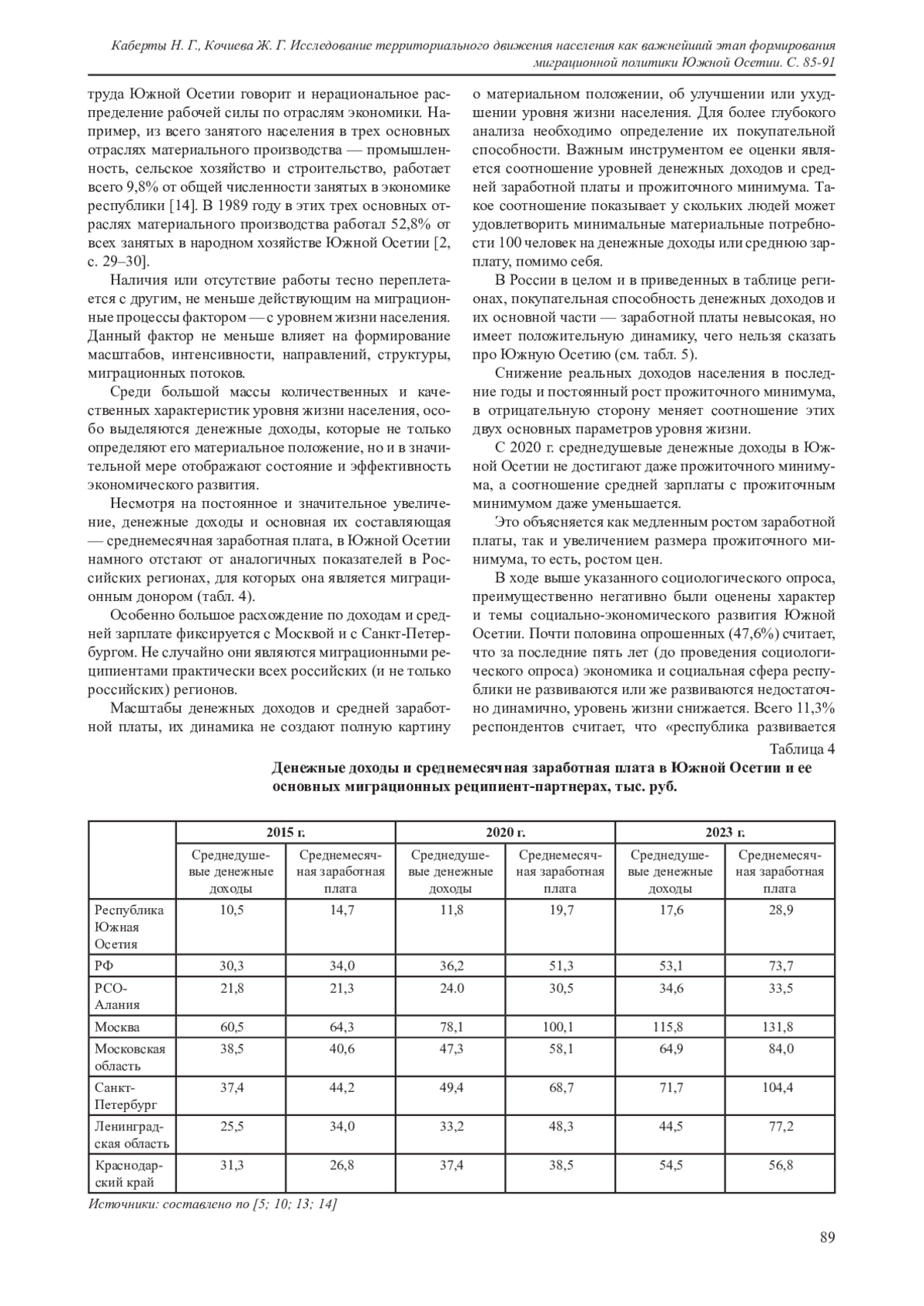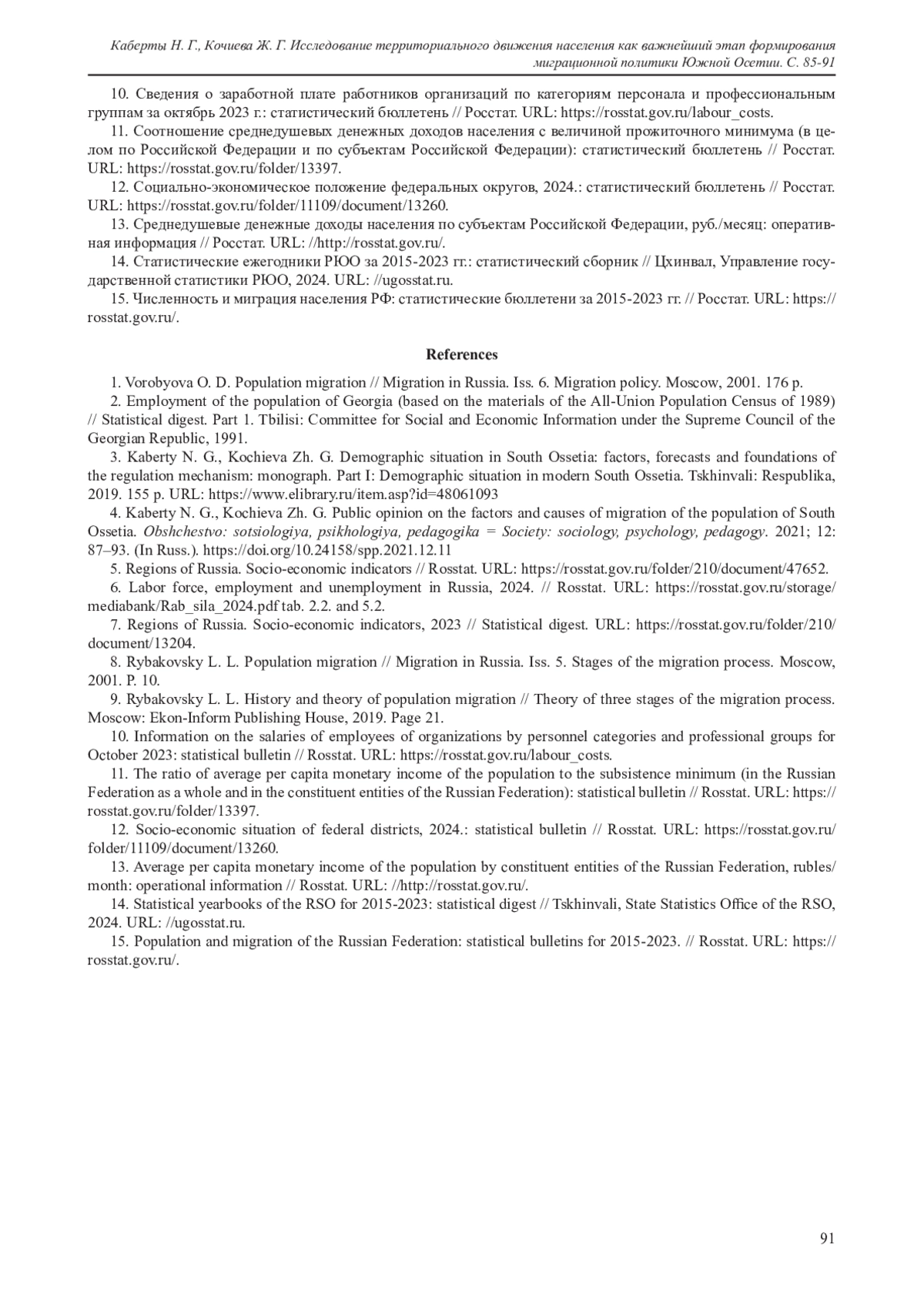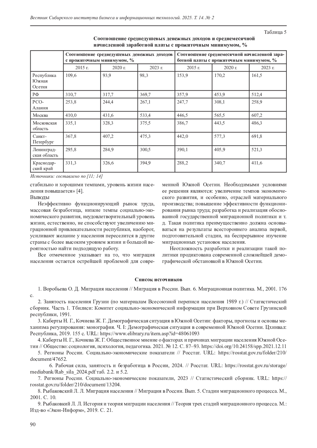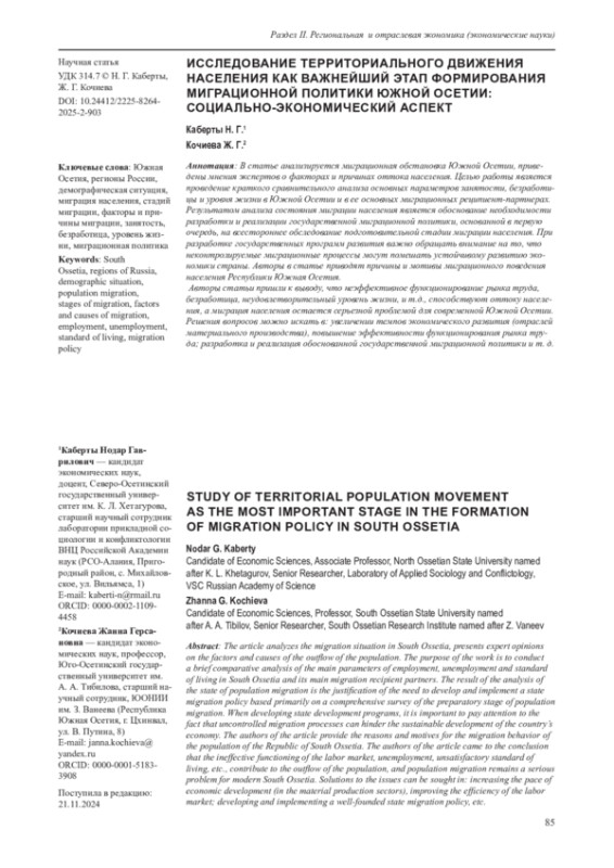 КАБЕРТЫ Н. Г., КОЧИЕВА Ж. Г. ИССЛЕДОВАНИЕ ТЕРРИТОРИАЛЬНОГО ДВИЖЕНИЯ НАСЕЛЕНИЯ КАК ВАЖНЕЙШИЙ ЭТАП ФОРМИРОВАНИЯ МИГРАЦИОННОЙ ПОЛИТИКИ ЮЖНОЙ ОСЕТИИ: СОЦИАЛЬНО-ЭКОНОМИЧЕСКИЙ АСПЕКТ // ВЕСТНИК СИБИРСКОГО ИНСТИТУТА БИЗНЕСА И ИНФОРМАЦИОННЫХ ТЕХНОЛОГИЙ. 2025. ТОМ 14, № 2