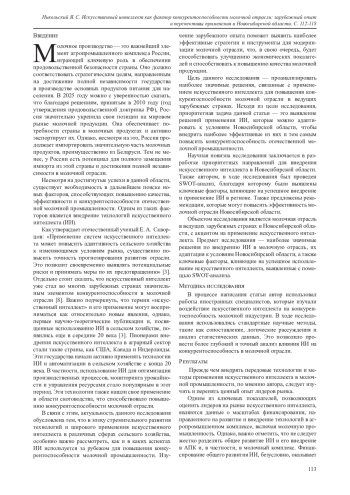 Ключевые фразы: конкурентоспособность, искусственный интеллект, молочная промышленность, ЗАРУБЕЖНЫЙ ОПЫТ, новосибирская область