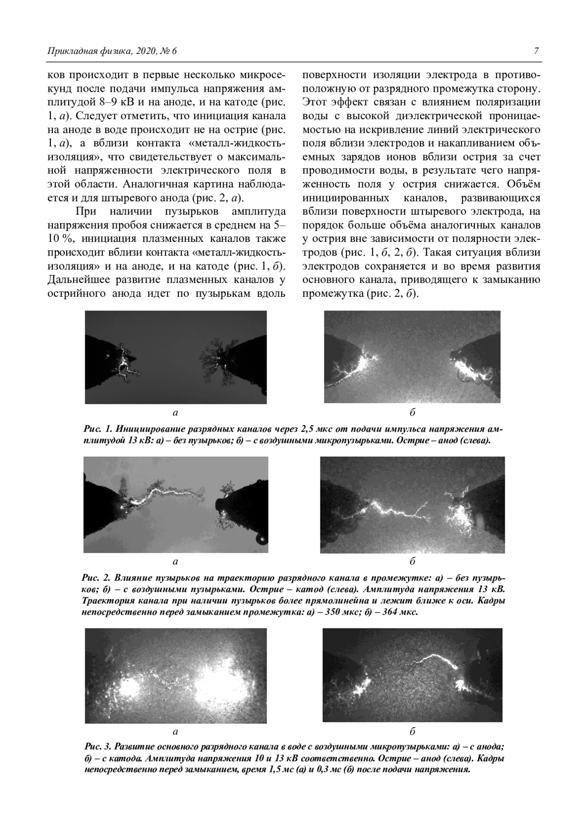 Панов В. А., Печеркин В. Я., Василяк Л. М., Ветчинин С. П. Влияние полярности электродов на развитие пробоя в проводящей воде с микропузырь-ками воздуха 5